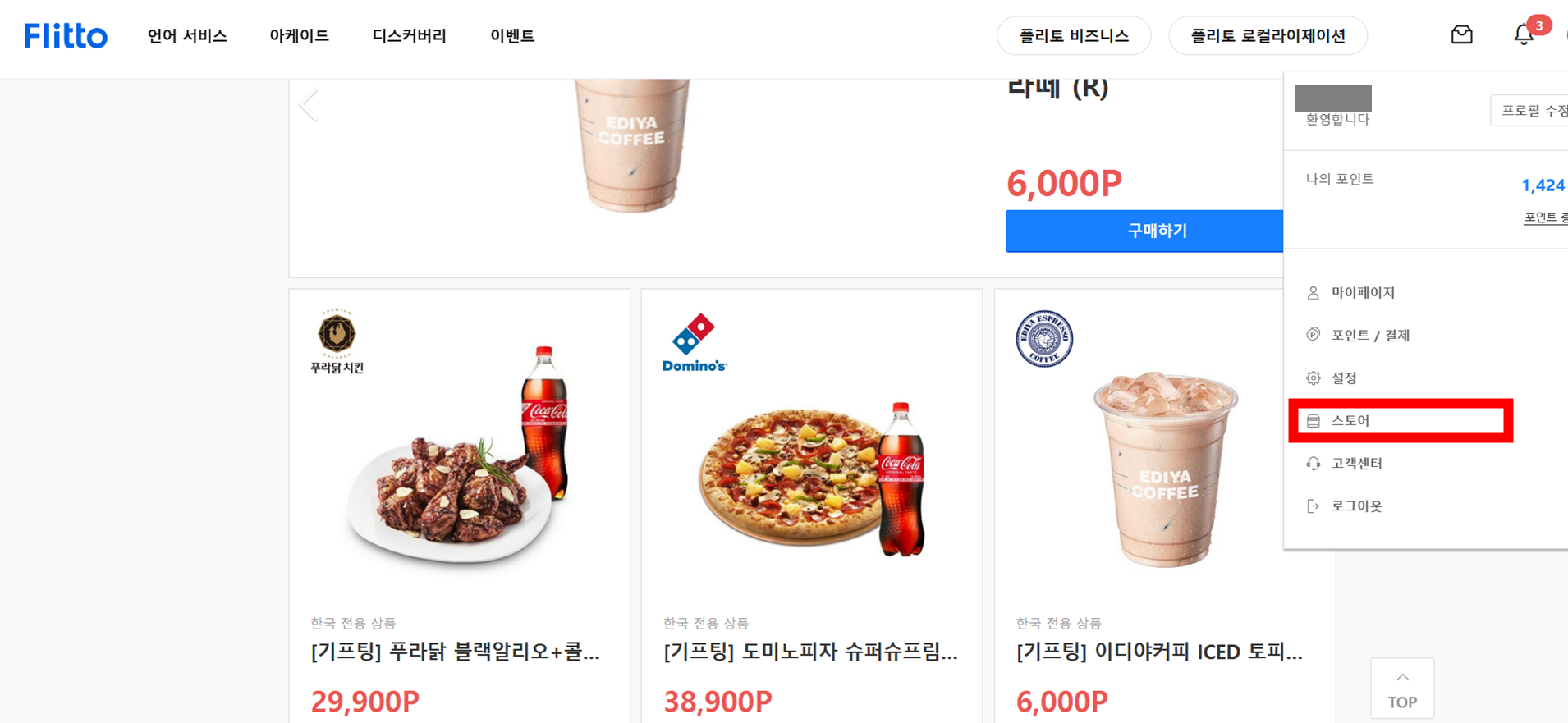 - '스토어'를 통해 그동안 모은 포인트로 제품을 구매할 수 있습니다.